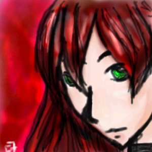 pretty pretty, i love the red hair and the red background it rilly makes her eyes stand out.