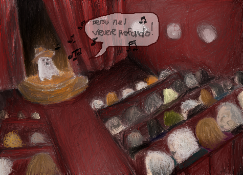 A variant on the Ghosts that inhabit my History notes. They generally sing opera or laugh boisterously. I had planned this to be a big project and work on it for hours and hours, but I've found that I need something new to draw. I hope you enjoy it anyways.