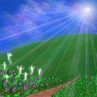 I have had a dream simular to this, it's about a death like the spirits you have in the flower bed that grew and danced with the breeze until it reached it's peak and then vanished, went straight up into the sky. Weird dream, but it seemed so peaceful to let go. I really like this shows emotion to me.