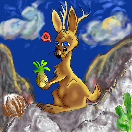 Meet Flavius...A common Jack-a-lope with a uncommon pineapple. (he's a smart jack-a-lope! yup)I'll make the sketch darker and not so sketchy later!! Can't wait for you to work on this knockoff!!! it'll be coool ;)