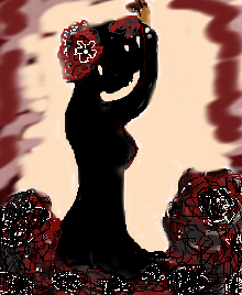 nice one Nellyvette.. I can even see the canasta (spelling?) in her hand! The dress ruffles actually look like they are moving... you might add the other arm though...