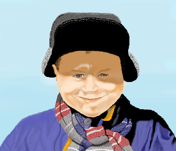 He's so cute! That scarf looks so real... I just want to reach out and snuggle it up around his neck! He has a bit of a Norman Rockwell feeling to him... love this.