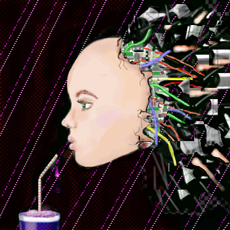 finally figured out the copy feature lol( thanks son) i watched a friend of mine take a huge drink of pop this afternoon and grab the back of her head moaning about brain freeze....so, here it is.(but my friend has hair lol...........ok i added a bit of a bg(was hoping for an ice cream parlor type feeling) and now my greatest fear( that of overworking anything) has led me submitting this as finished. phew.