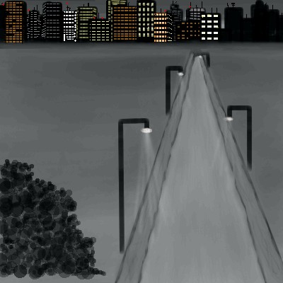 ooh you guys work good together this is very cool! Is it me or does the bridge just kinda abruptly stop before it reaches the city? City could use one or two red neon signs on the tops of buildings.. like in the real city.. I like this.