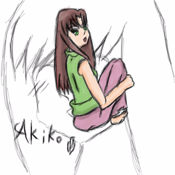 | Mafuyu (Mar 21, 2004)I know this is probably light-years away from intermediate skill, but I wanted to enter the mascot theme. This is Akiko, and the Bg is just one of her sketches, I suppose. And for those of you who are wondering why there's a leaf after her name, it's because Akiko is Japanese for "Autumn Child."