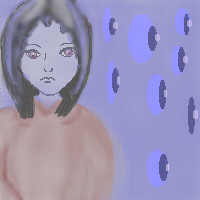 don't be blue. this is a good job! i like how she kinda blends into the bg...and very nice shadin on her shirt. maybe shape her arms a little, and sharpen up a bit in general...but very nice job. been lookin through your other pieces too; nice work. keep at it, and you'll be amazing before ya know it!