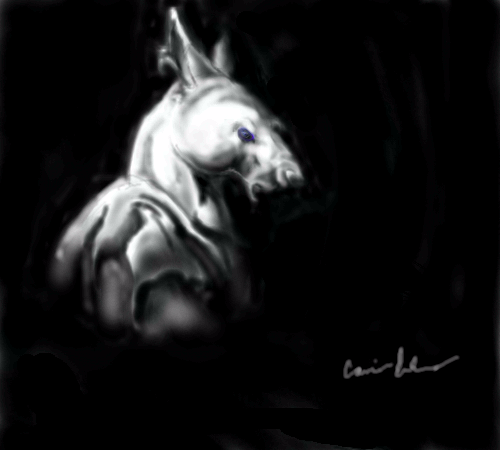 Self-crit: I need to work on my shadows, and perhaps drawing light-on-dark would have been a better approach (as it is, I used a mix). Also, his/her? cheek needs a bit of help!