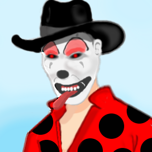 ooh i like this, except the nose, i dont think the black dot looks right, he doesnt have nostrils, but i like the hat and polka dots