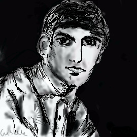 | PolythenePam (May 10, 2004)Another piece, well, second attempt at a style I like to call "not-very-realism"! What I wanna know is how good I am at drawing likenesses, so, lets play GUESS WHO THIS IS A PICTURE OF! It's someone who was pretty famous, and you all should know who he is. Ok, so maybe only the older lot, but I'm 15 and I think he was brilliant, and maybe I'm not the only one :X
