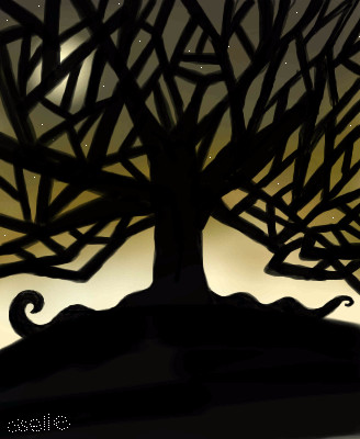 I really like this. The tree thing is really interesting and I love the shades you used for the sky. Kind of eerie.