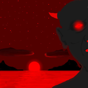 The river, Styx.. spooky looking and that glowing red eye is a frightening sight. Dang! Another good one.