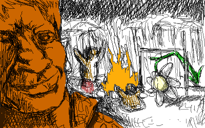hehe! i forgot how much fun this game is >.< man its like 10 times more fun cos we have awesome tools, the guys face is neat cos its all orange but like its illuminated from the fire right?
