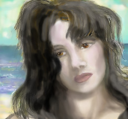 I think I see what you did, here... each version is like a separate piece of work, a transformation from turbulence into calm. This was really a neat idea, and the final picture does give you a feeling of tranquility - although she does still look a little sad and hopeless.