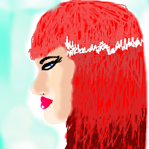 I like it! I like the shininess. I think you should blur or make the hair less slopy.