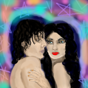 Very pretty colors in the bg..Nice figures.. her thumb looks a tad strange but nice