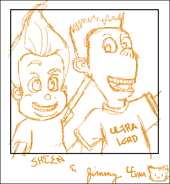 asjkdhfasjkdhf. Photograph of Jimmy Neutron and Sheen... "Whatever-his-last-name-is". It was Armando's Idea. And it was also his idea to have hello kitting in the corner. -shrugs- Happy Late B-day Marcello!! >_<;