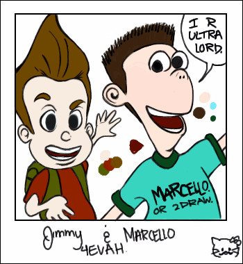 asjkdhfasjkdhf. Photograph of Jimmy Neutron and Sheen... "Whatever-his-last-name-is". It was Armando's Idea. And it was also his idea to have hello kitting in the corner. -shrugs- Happy Late B-day Marcello!! >_<;