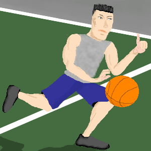 I tried to draw a person dribbling a basketball without any reference images. The fill tool started acting up, and I couldn't apply texture to the court. I might try to put a little sweat on the guy later.