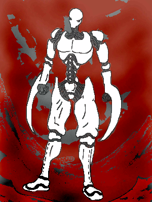 I agree with two-na, that background is awesome. The robot makes me think of a Stormtrooper on evil crazy steroids. Pretty cool, man. Is the bot an original design of yours?