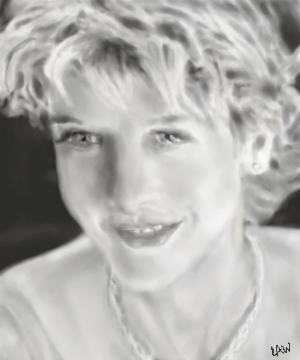 You finished! It's wonderful... you captured her likeness exactly, and there's something about the soft way you did this and the sparkles you put in her eyes that sort of reflects her bubbley personality. I love it.