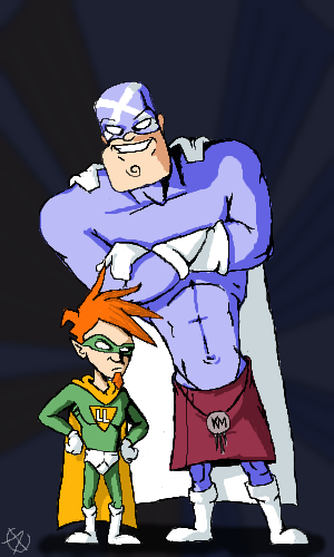 My comicbook superhero's (or moron-eo's, as I like to call them) are Super Mega Hyper Teen Aqua Drive Force.....really funny, especially if you watch ATHF....