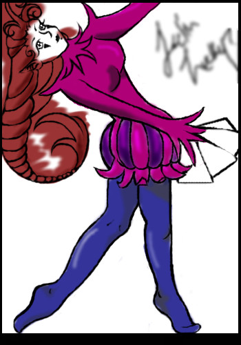 this has been rotting in my studieo for so long now. thought about deleting it a few times... ANYWAY~Sutafani took a shot at coloring it but couldent finish so i did. you know... i would like this better if THE LEGS WERE THE SAME LENGTH!!! *sigh*