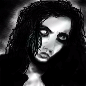 Ville Valo from Him. God, my eyes burn so bad now. It's worth it though, because I actully like this one. A LOT. It took forever to get his face right. He kept looking too femmenin. The whole thing was pretty much done with the airbrush. I'm gonna take a nap now.