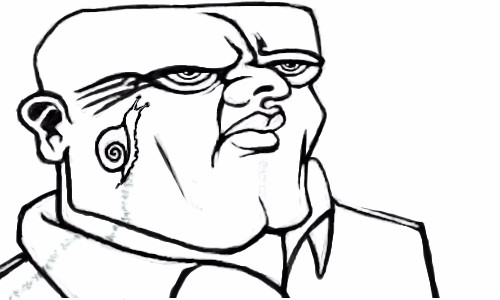 He looks like a very hard and tough person... He can stay still without even bothering taking the snail off! And stay still for so long that the snail crawled from his feet all the way up to his head! >:D