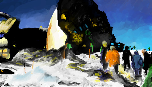 25 years ago this aeroplane hit Mount Erebus and all 257 aboard were killed. It is still New Zealand's worst peacetime tragedy...The green flags mark the human remains.