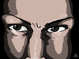 This is really well done, I like how you did all the shading, and the perspective you chose for the picture. It looks like the person is looking right into a video camera.