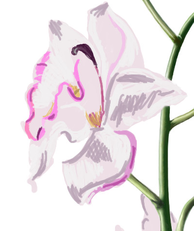 Haha.....improving are we?Really shows in the petals with the speckled purple texture on the white surface.Lots of people would be lazy and just make a general observation, but you took that extra step to make it look better.And I know you aren't finished here, but in your later revisions, you can try doing something about that almost consistent white reflection on the stem, such as look for green specks that appear in the middle of the line of reflection, or deformations in the shape of the reflection.Remember, you wanna make these things look natural, so looking for deformities even in the slightest will distinguish the picture from a non-living replica of what it is you're drawing.Just treat the stem as if you were doing the petals and it should be fine :).Very nice though.I can see you really looked into the curvature of the petals.
