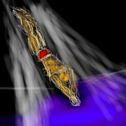 looks like hes coming into orbit! i love it! looks like hes going really fast! the legs dont really look very good tho