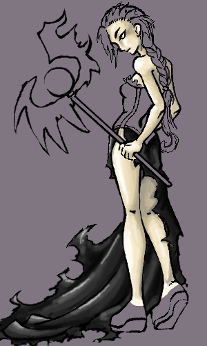 Very nice pic. I like her hair and her outfit. And that star sapphire wand thing. The background is pretty cool looking, too. The more I look at this, the more I like it. :)