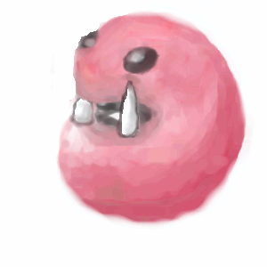 Sorry I have commented sooner. Heh, reminds me like a maggot or something.... A pink man eating maggot. Yum, that sounds fun! The fuzz is because either a) your using water, and that happens, or b) Your blurring it and keeping it overly blurred in some areas. I think it looks nice though. You should add a BG though. It would make your picture better!