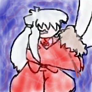 This is what he would lokk like if he used the shikon jewel to turn full demon.The lines of pink and purple are his demonic energy surrounding him,mixed with the aura of the shikon jewel.Is this going to happen I have no idea but this is only what Miroku and Sango think Inuyasha's going to look like if he does use the shikon no tama to transform into a full fleged demon but who would really wan't to be a full demon anyways?I think Inuyasha should stay as he is now because even though he's only a half demon he's still stronger than any other full demon he's come by(beside's Sesshomaru and Kouga of course).So ya please add your comment!!!^^