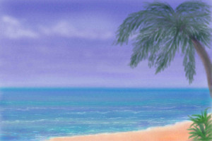 It's good, but I'd find it more effective if the grass bits and palm fronds didn't seem afraid of going off the canvas. It feels awkward with things just sitting on the edge without going over it.