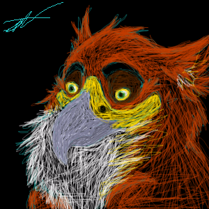 The vibrancy of the red against the black and the way the edges of the red softly fade into the black is giving a feeling of action and strength to this. I think though that the grey of the beak might be counter-acting that feeling some since everything else is very intense except that. Of course it's still a good drawing regardless.