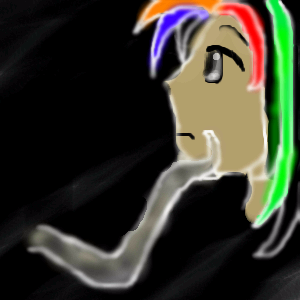 It's an interesting scene you're making here. I'm wondering if there's a reason for the multicolored hair or if it was something just done arbitrarily. I'd lean toward making it either mostly or entirely one color, or maybe one color that fades into another color personally.