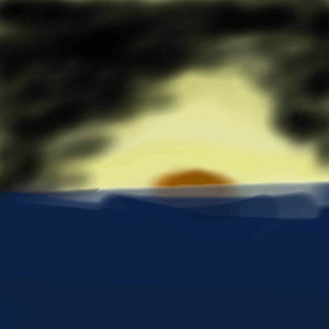 As was mentioned it is a nice use of colors. I think that maybe you could add a bit more deep blue to the clouds though instead of having them just grey and black. If you notice the red-orange of the setting sun is really what pulls this together and makes it work. Try putting your thumb over the sun here and notice just how flat things become without it, but when you see the picture with that sun it becomes much more dynamic. I think that however you decide to finish this you should definately protect that sun right there because it's adding a lot of visual interest here.