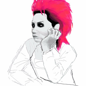 Shes a cousin of the Phantom of the Opera..shes the Ghoul of the Hard Rock Cafe.. I actually like this quite a bit . It's striking with the colors and the contrast to the plain bg.