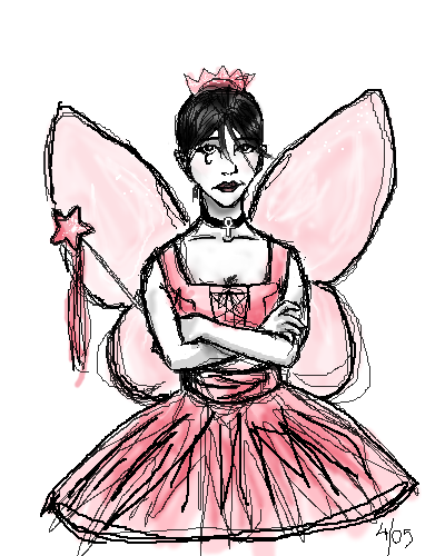 Yes, more Sandman. I'll stop soon, I swear.This is Death, Dream's older sister. Despite her miffed look at being placed in a pretty pink tu-tu here, she is really quite cheerful. In fact, she's probably the most light hearted of the Endless. . . I take that back. Delirium would be hard to beat in that respect. Anyway, character from Sandman (c) Neil Gaiman, not me, blah blah blah.