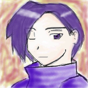 Ok. This is good,but you really need to work on the backround. Also layers help, although i'm not sure that you didn't... :P Colors! Work on defining your colors more. You used the same purple on the whole thing! Lineart... Make it clean before you submit. Shading!!!!!! Make it more realistic. His hair looks like a big plastic slab!