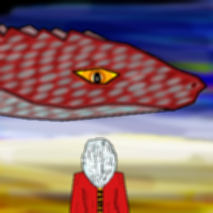 I'm not sure if the dragon is thinking of dinner or thinking about giving this hitchhiker a ride.
