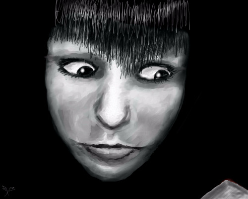 I like the eyes; they look upside-down. Awesome effect and grayscale.