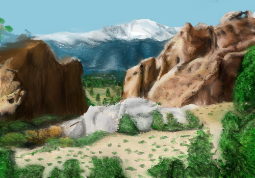 giving landscape a shot...going to finish this up either today or tomorrow...any suggestions or thoughts welcome...and yea...dont know how that brown line in the rock got there...ill fix that