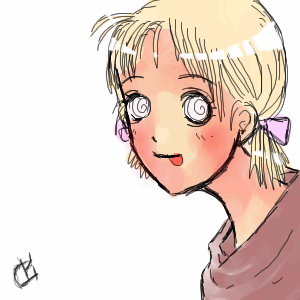 I like her twirly eyes. They look like she is dizzy! Her face is very pretty too. Awesome. <:D