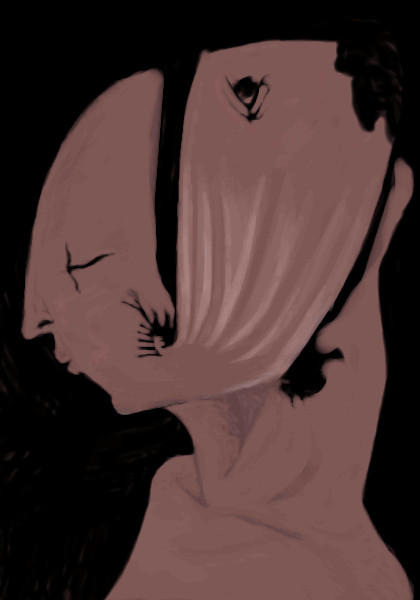 bravo zep - thus far, i see three faces: The closed eye counts for one face - the second eye accounts for two faces (one is similar to your 'Soul Power' picture, and the other is facing the sky, his adams apple takes form at the back of the sleeping ladys neck). I look forward to seeing the end result. peace