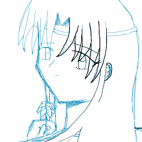 Not even close to finishing this...I need to fix the hair and outline it in black. I'm having Mika-chan do the coloring when I'm finished with my part of the picture. and is it just me, or is the hand too small? O_o