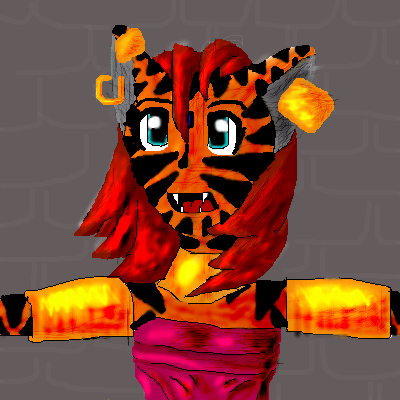 Hmmm...well I have a few things to say. First thing. If she has fur, try and add different shades of hair color, you know, to make there be shadow and shine. If you look at a cat it doesn't have all one type of hair color, just as an example. Another thing. I love the way the shine turned out on her jewelry. You really did an excellent job on that. Nice work overall. Just a few things to touch up on to make it better!