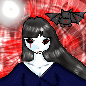 A girl with a bat.There should be a spider...but there wasn't enough space to do it...so It's just Finished. the white thing is the moon. ^^". hope you'll like it.